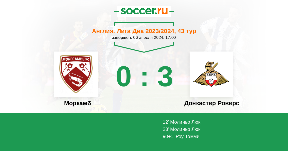 | Моркамб | 15:13 | 8:9 | 7:4 |