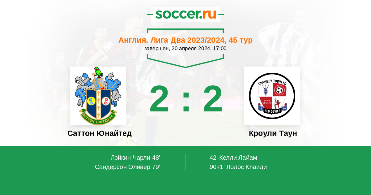 | Саттон Юнайтед | Кроули Таун | |