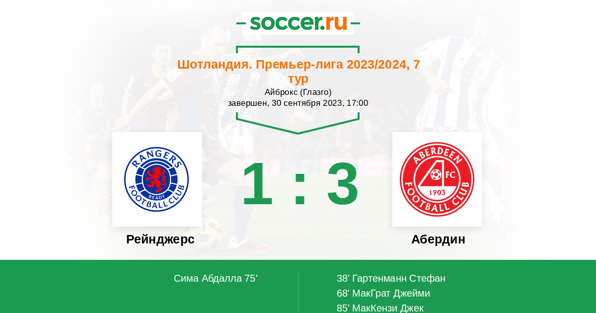 | Рейнджерс | Абердин | |