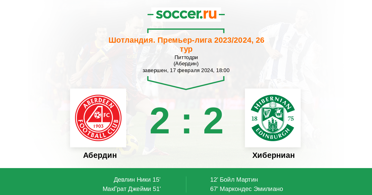 | Абердин | Хиберниан | |