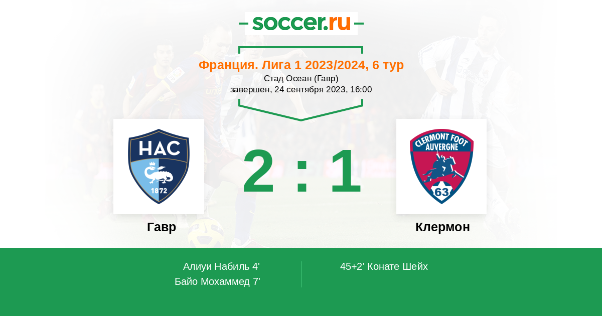 | Гавр | 30:38 | 13:13 | 17:25 |