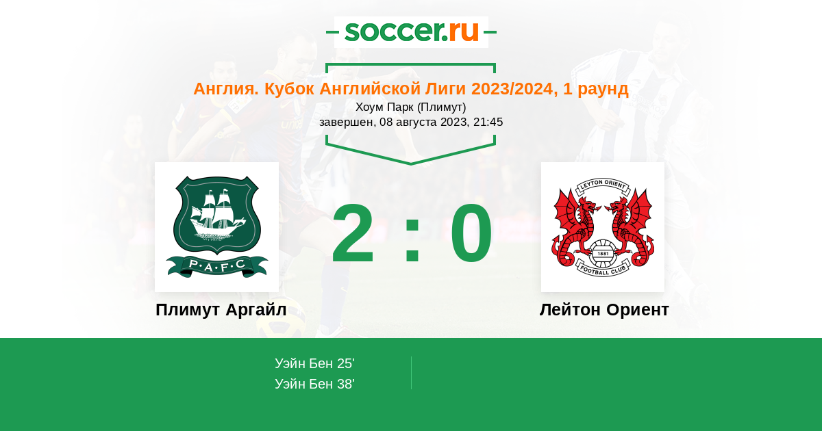 | Плимут Аргайл | Лейтон Ориент | |