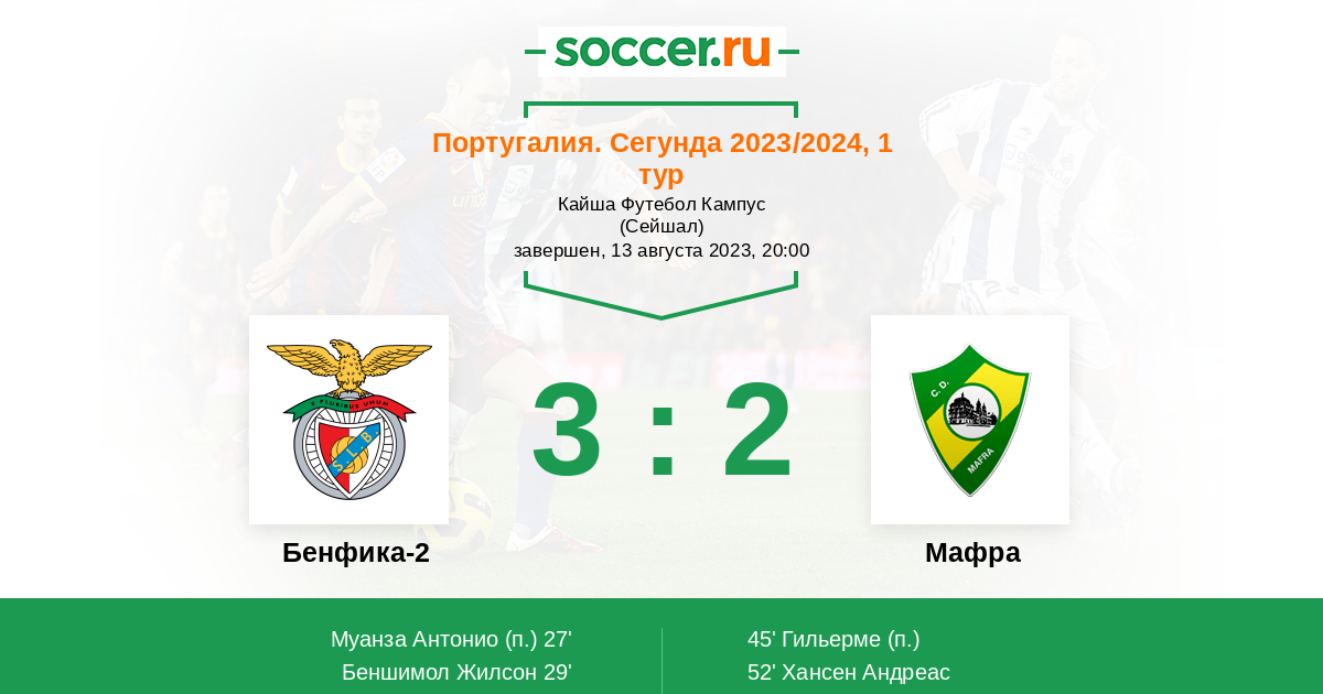 | Бенфика-2 | 24:18 | 18:6 | 6:12 |