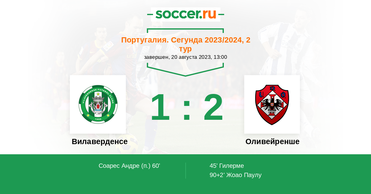 | Вилаверденсе | 1:0 | 0:0 | 1:0 |