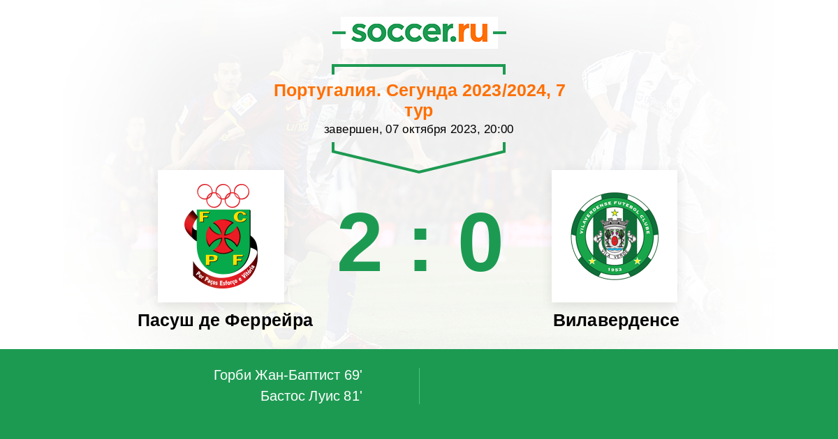 | Пасуш де Феррейра | 1:0 | 0:0 | 1:0 |