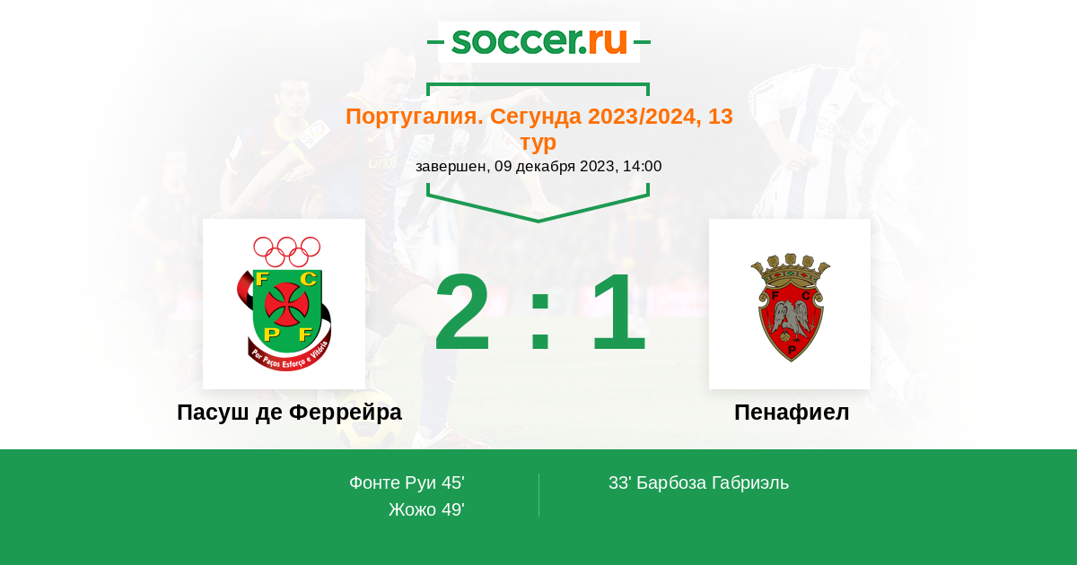 Последние 5 игр дома Пасуш де Феррейра