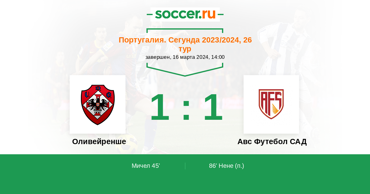 | Оливейренше | 1:3 | 0:0 | 1:3 |
