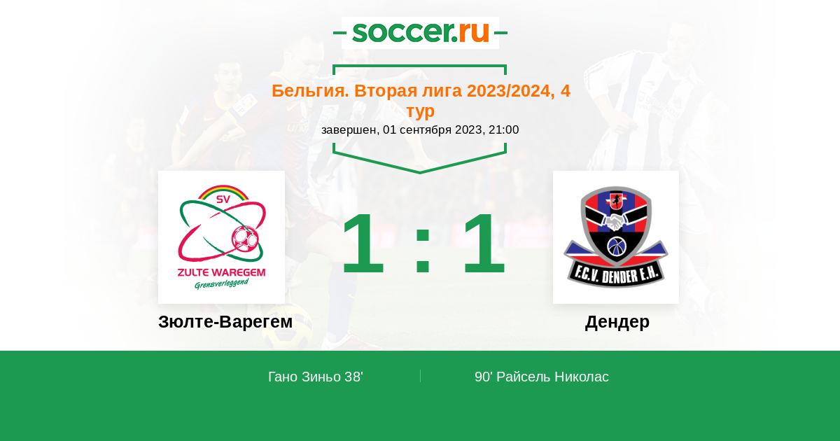| Зюлте-Варегем | 9:4 | 3:1 | 6:3 |