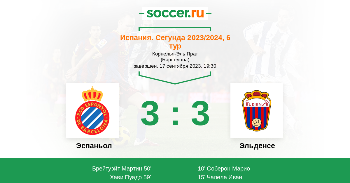 | Эспаньол | 2:3 | 0:0 | 2:3 |
