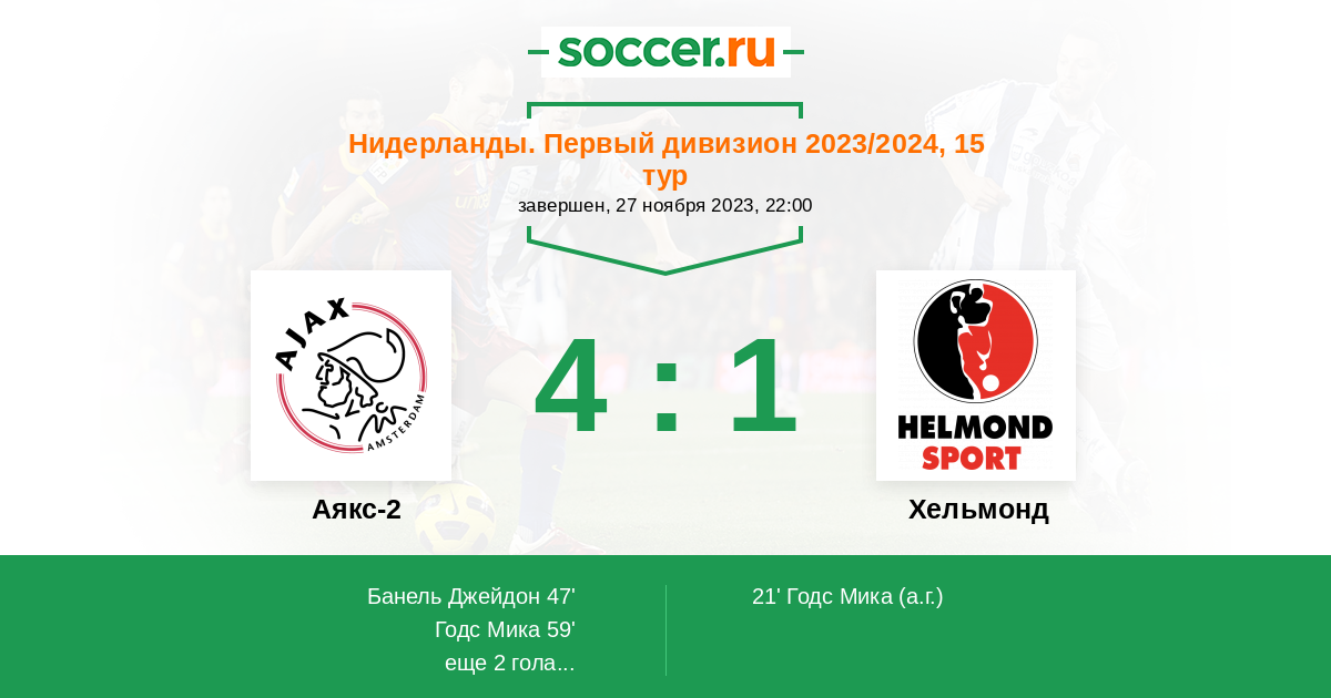 | Аякс-2 | 48:33 | 21:9 | 27:24 |