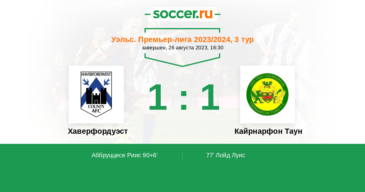 | Хаверфордуэст | 52:42 | 24:21 | 28:21 |