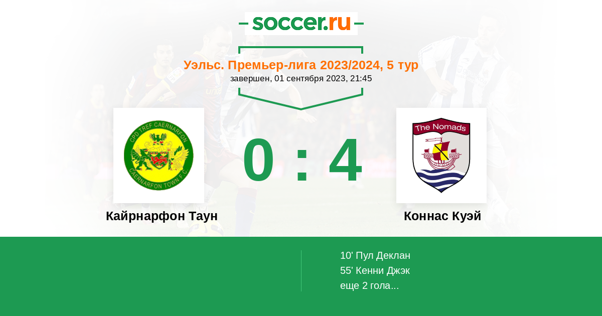 Последние 5 игр дома Кайрнарфон Таун