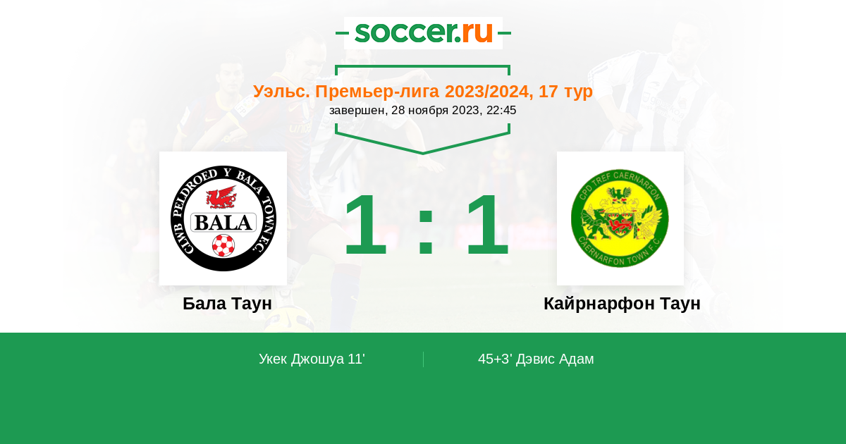 | Уэльс. Премьер-Лига | 26 | 10 | 9 | 7 |
