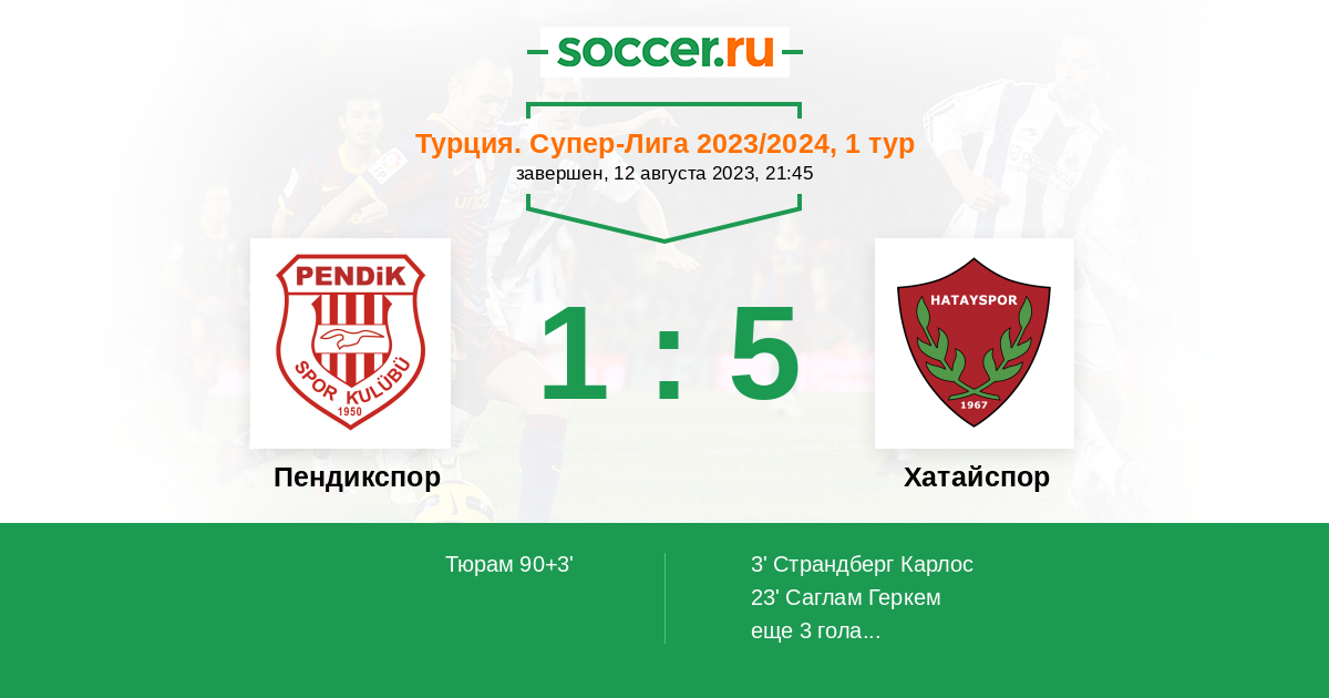 | Хатайспор | 1:2 | 1:2 | 0:0 |