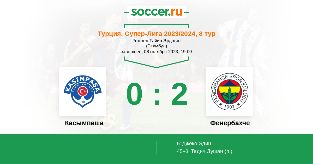 | Касымпаша | 34:91 | 14:45 | 20:46 |