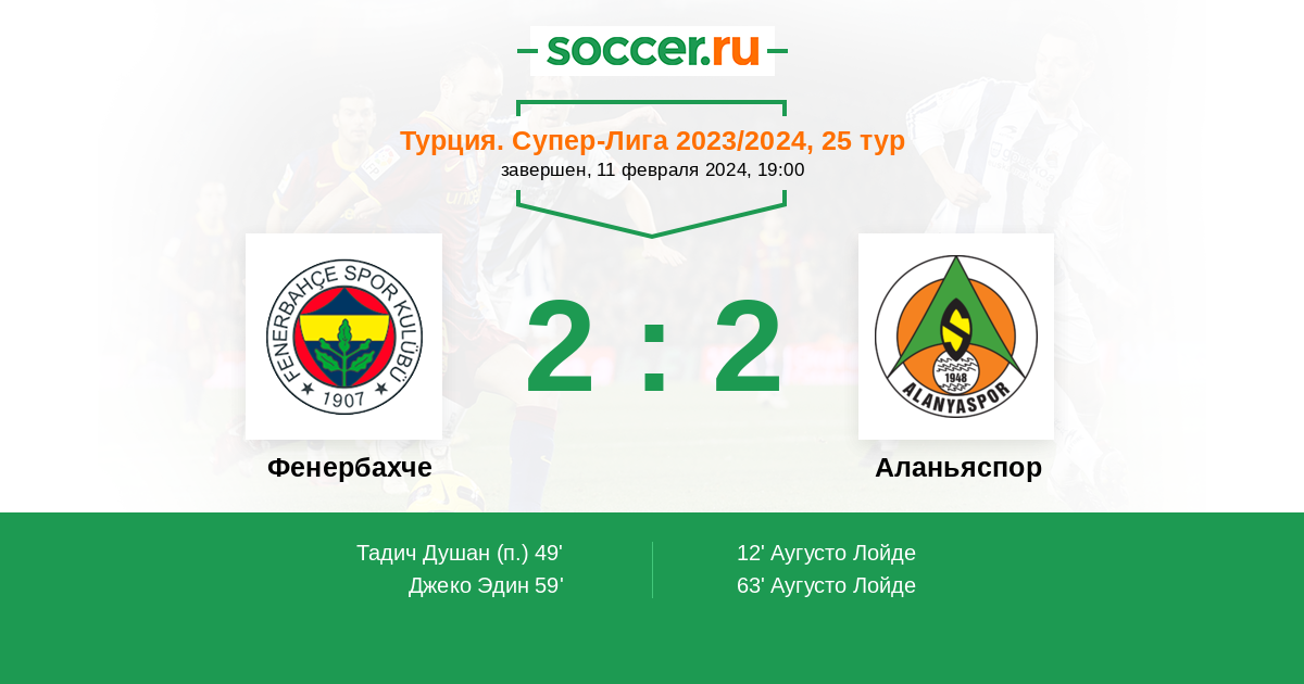 | Аланьяспор | 22:52 | 15:32 | 7:20 |