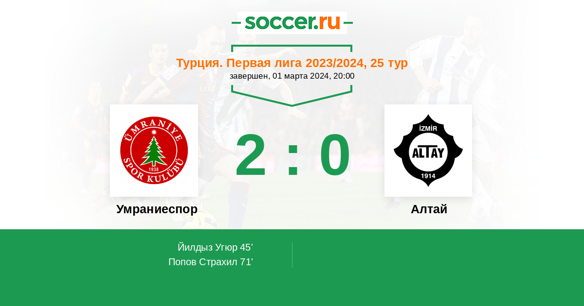 | Умраниеспор | 10:9 | 3:4 | 7:5 |