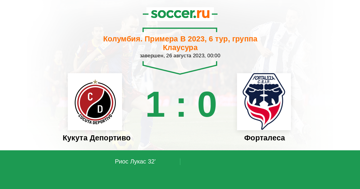 | Колумбия. Примера А | 1 | 0 | 0 | 1 |