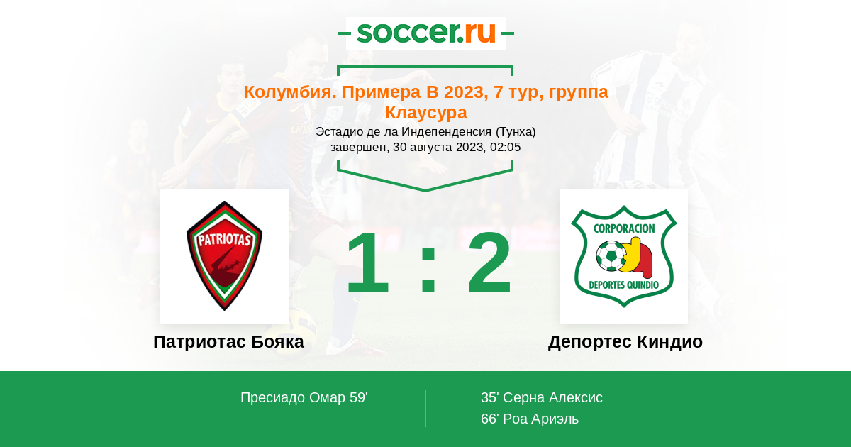 | Патриотас Бояка | Депортес Киндио | |