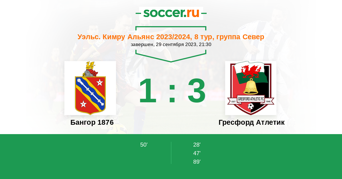 | Бангор 1876 | Гресфорд Атлетик | |