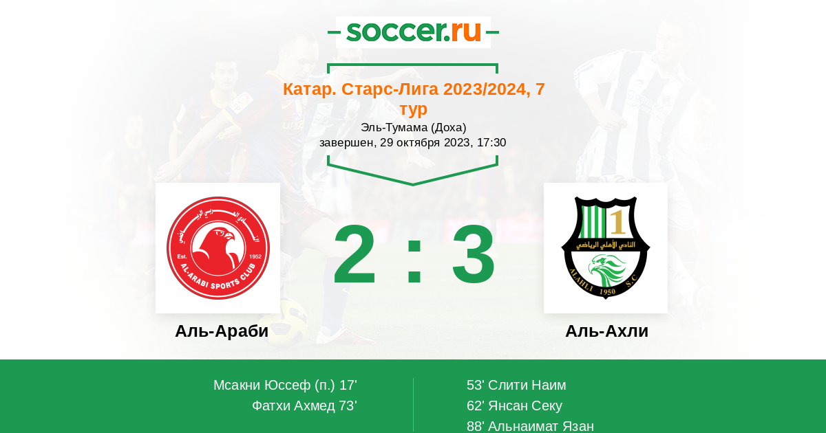 | Аль-Араби | Аль-Ахли | |
