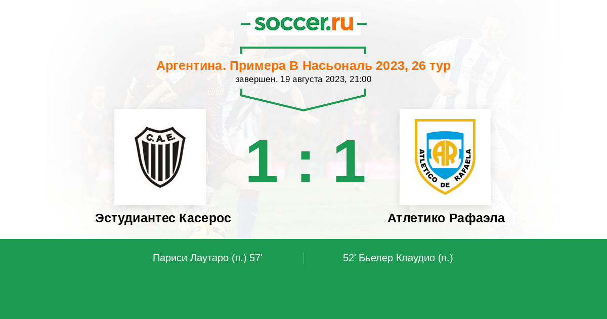 | Эстудиантес Касерос | Атлетико Рафаэла | |
