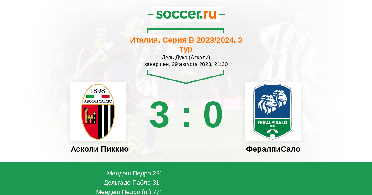 | Асколи Пиккио | 1:0 | 0:0 | 1:0 |
