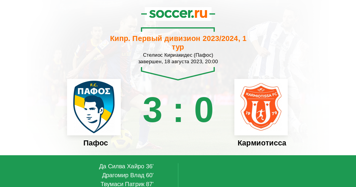 | Пафос | 23:3 | 13:1 | 10:2 |