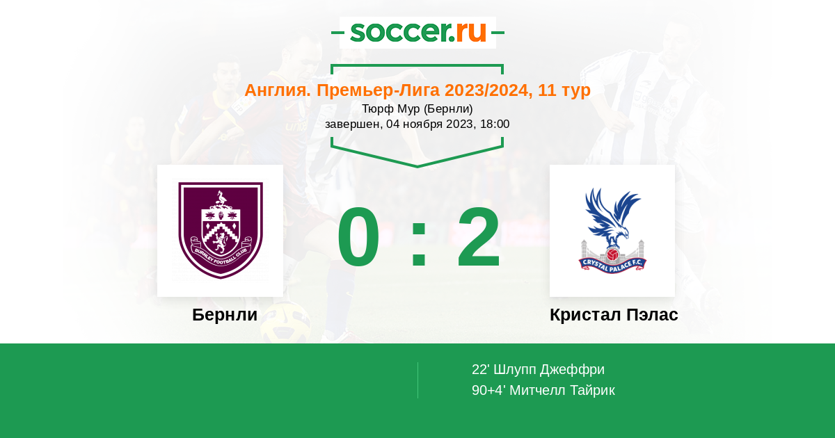 | Кристал Пэлас | 54:53 | 27:23 | 27:30 |