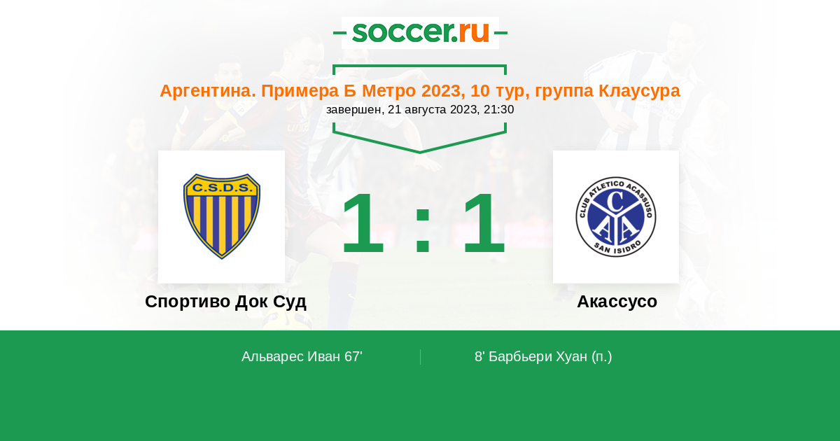 | Акассусо | 4:10 | 2:4 | 2:6 |
