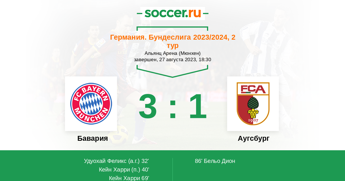 | Аугсбург | 31:83 | 19:43 | 12:40 |