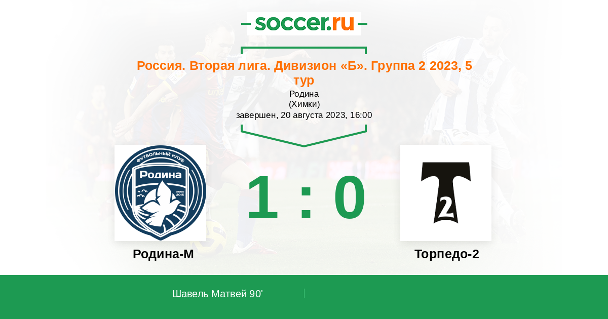 Последние 5 игр дома Родина-М