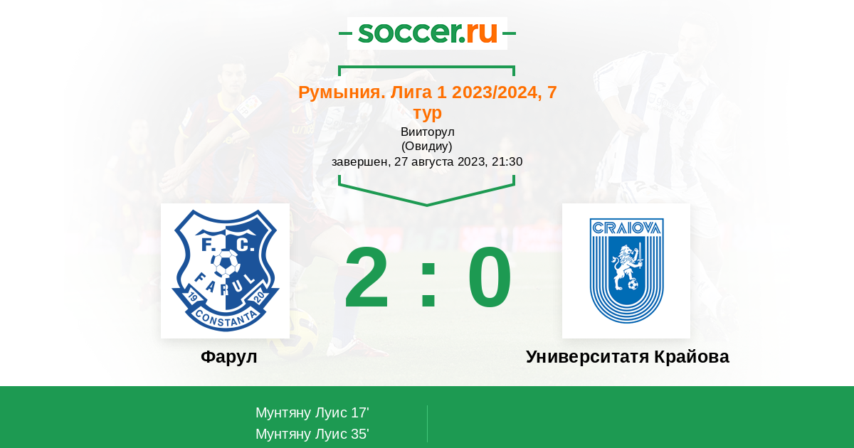 | Фарул | Университатя Крайова | |