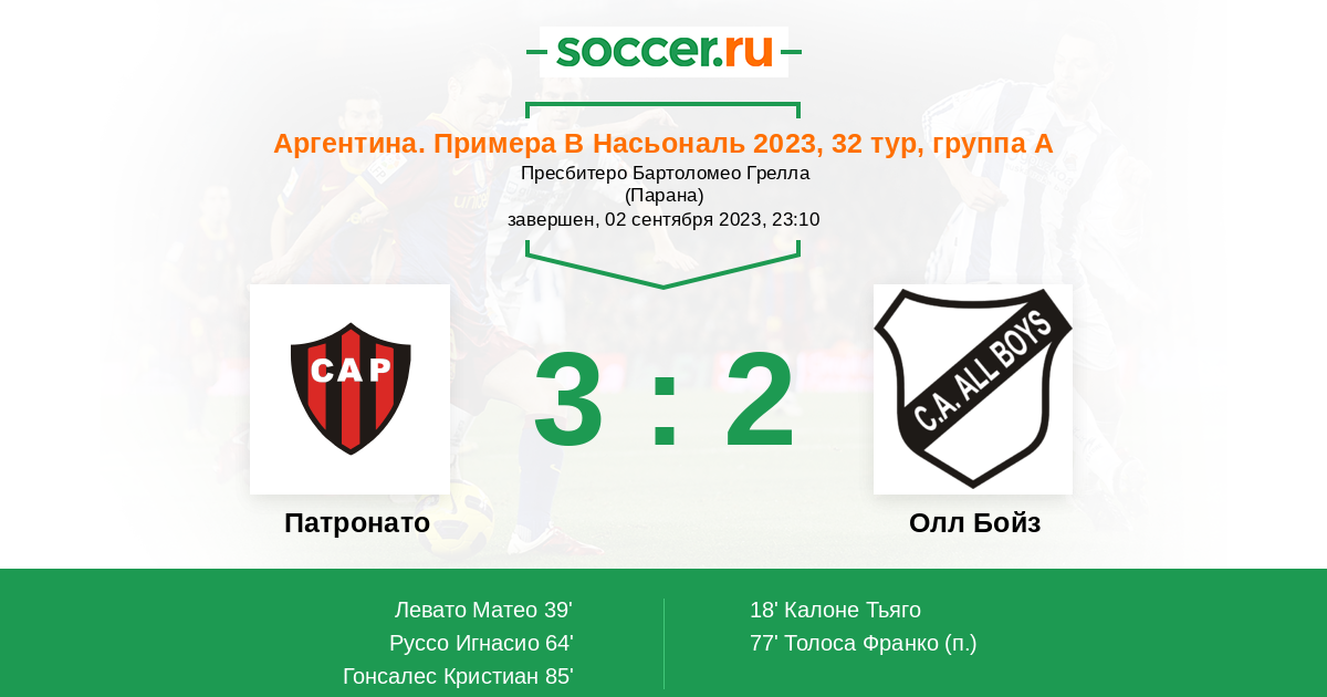| Патронато | 4:3 | 3:1 | 1:2 |