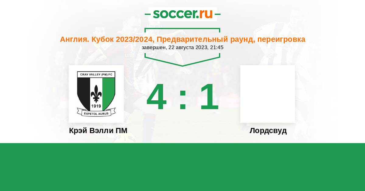 | Крэй Вэлли ПМ | Лордсвуд | |