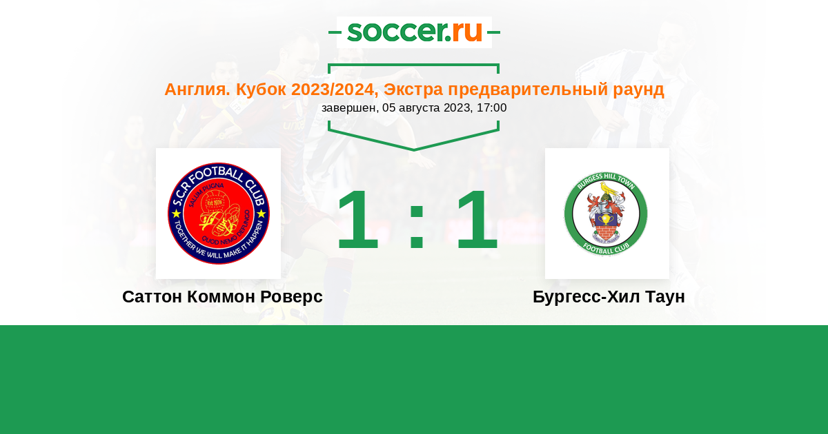 | Саттон Коммон Роверс | Бургесс-Хил Таун | |