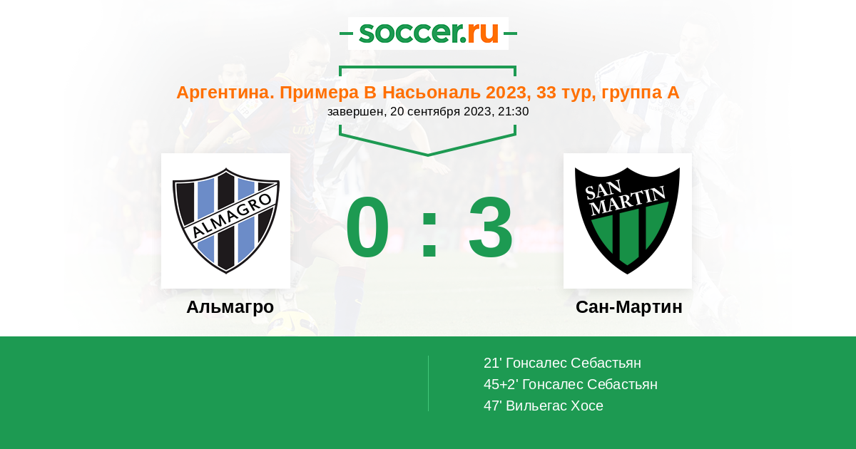 | Сан-Мартин | 14:7 | 8:6 | 6:1 |