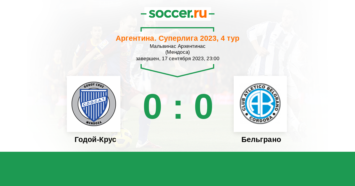 | Годой-Крус | 10:4 | 9:2 | 1:2 |