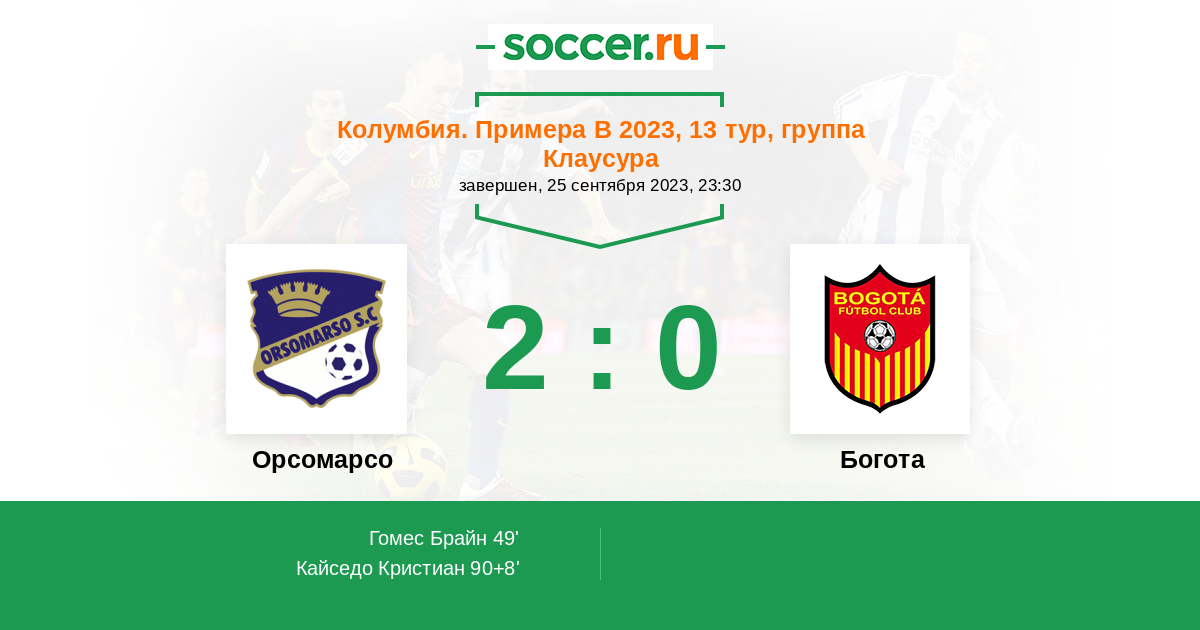 | Орсомарсо | 23:28 | 13:6 | 10:22 |