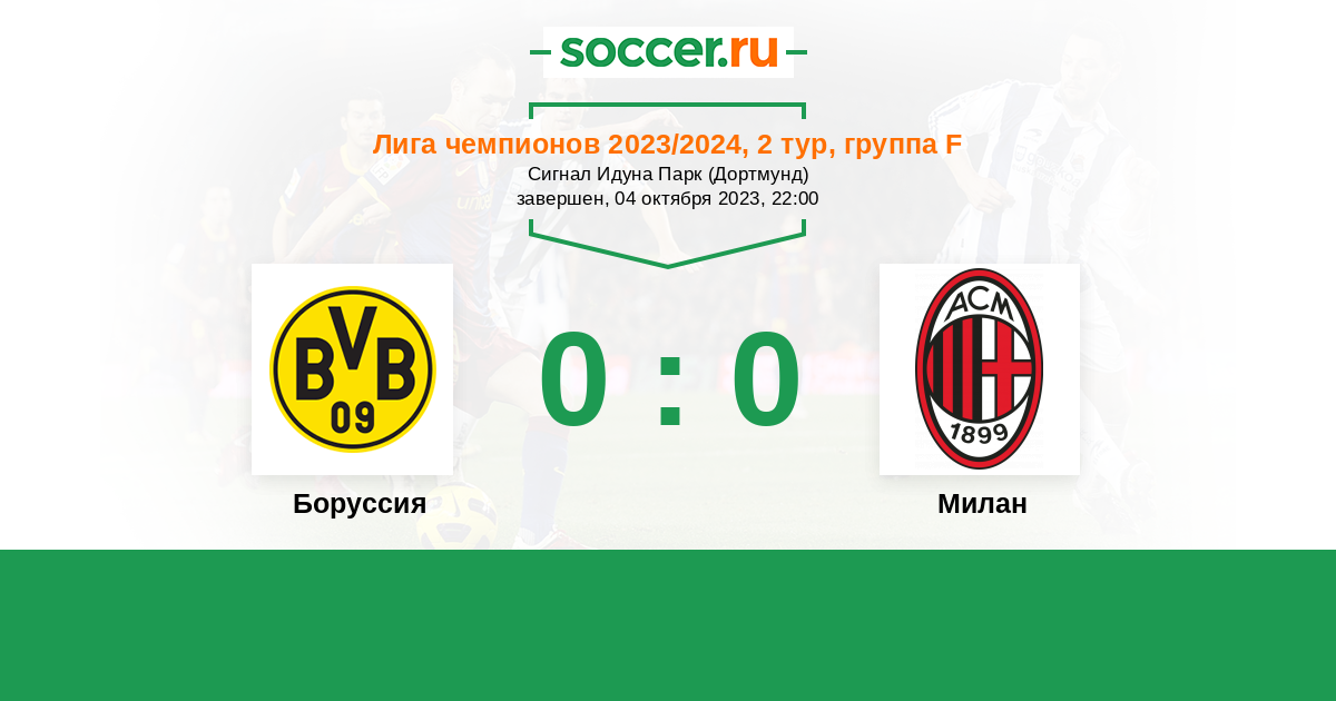| Боруссия | 12:6 | 4:1 | 8:5 |