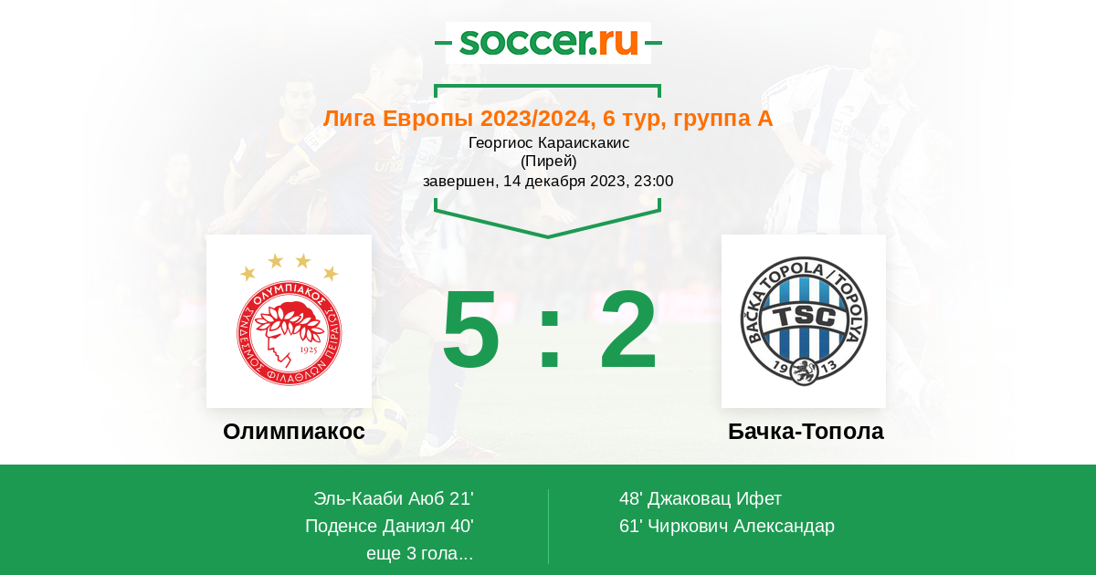 | Олимпиакос | Бачка-Топола | |