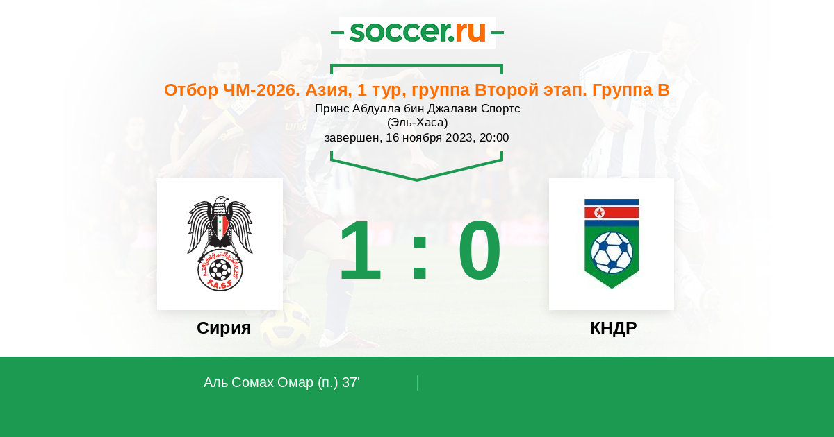 | Сирия | 0:1 | 0:0 | 0:1 |