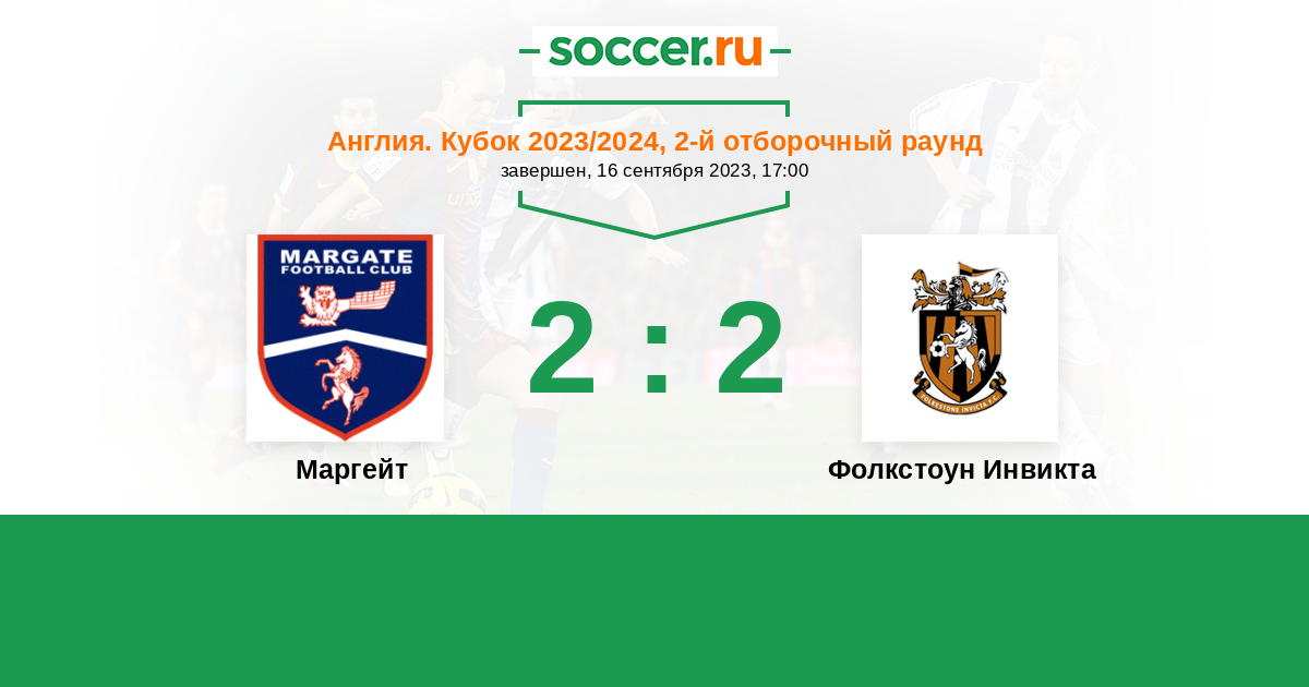 | Маргейт | 3:1 | 0:0 | 3:1 |