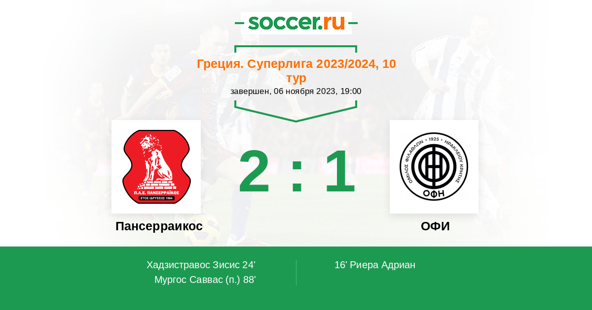 | Пансерраикос | 6:16 | 4:6 | 2:10 |