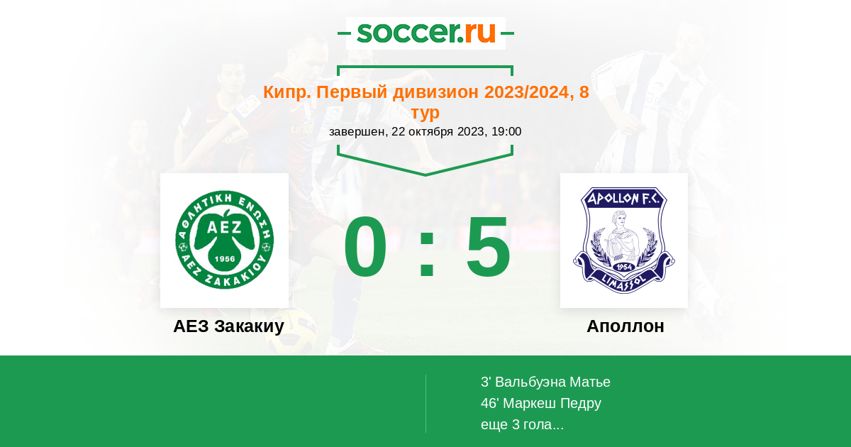 | АЕЗ Закакиу | 1:6 | 1:5 | 0:1 |