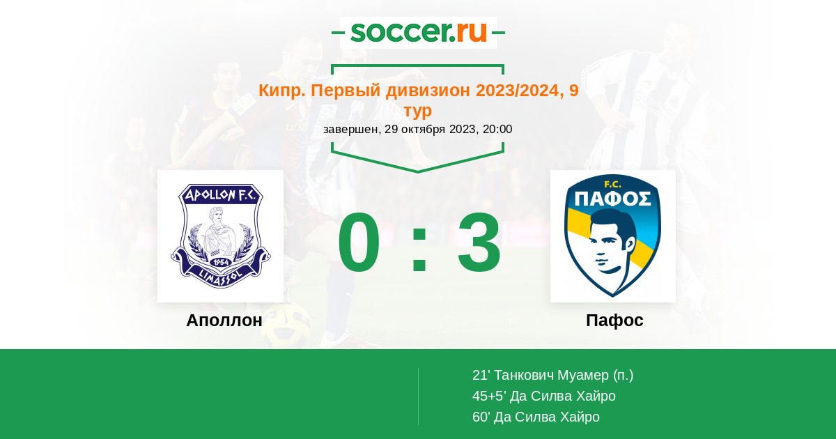 | Кипр. Первый Дивизион | 23 | 9 | 8 | 6 |