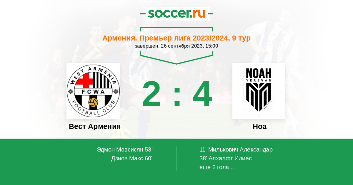 | Вест Армения | 6:29 | 2:9 | 4:20 |