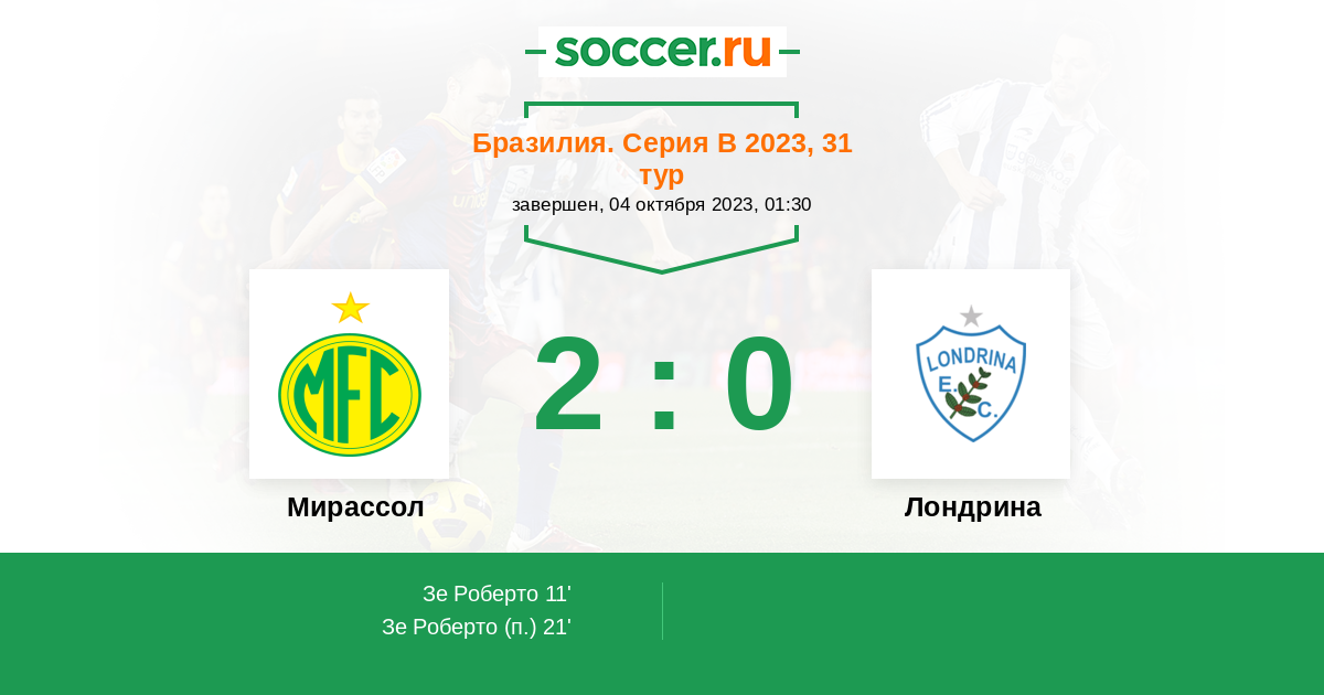 | Мирассол | 2:1 | 0:0 | 2:1 |
