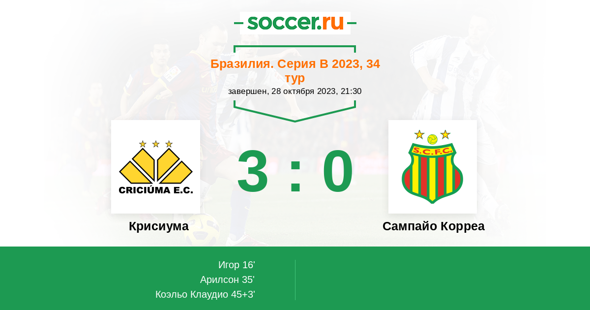 | Крисиума | Сампайо Корреа | |