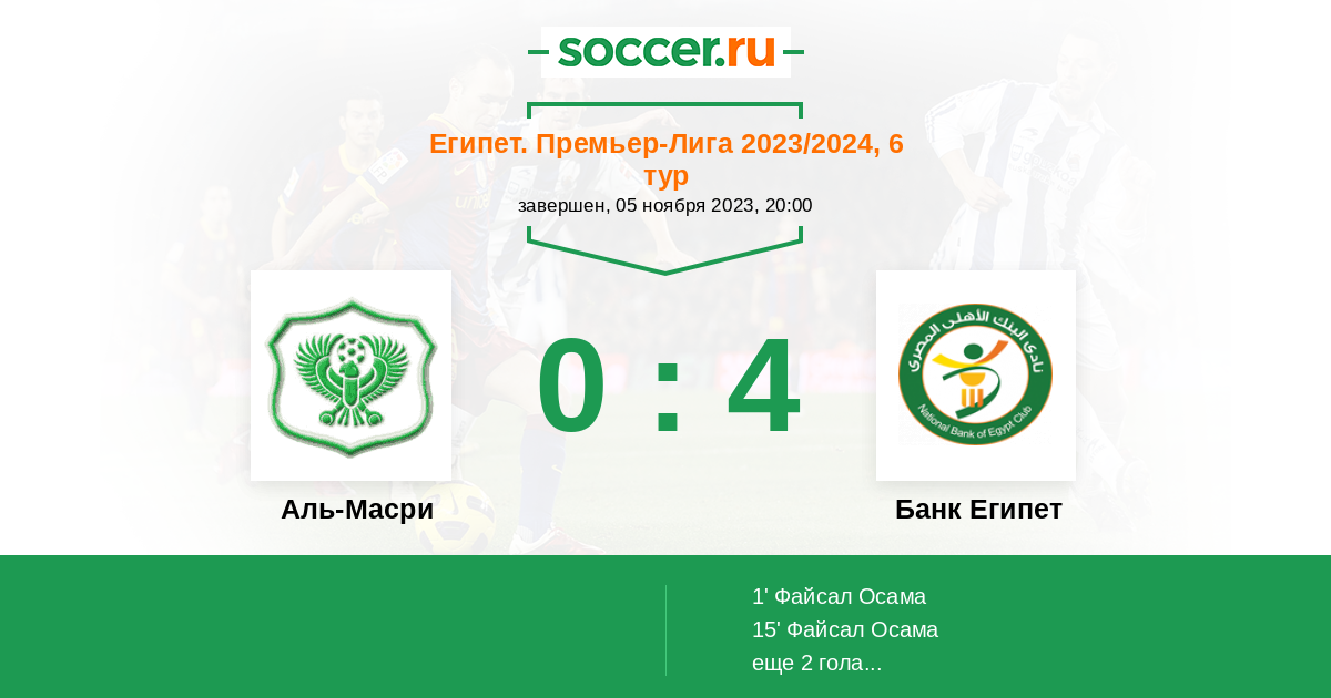 | Аль-Масри | 7:12 | 1:3 | 6:9 |